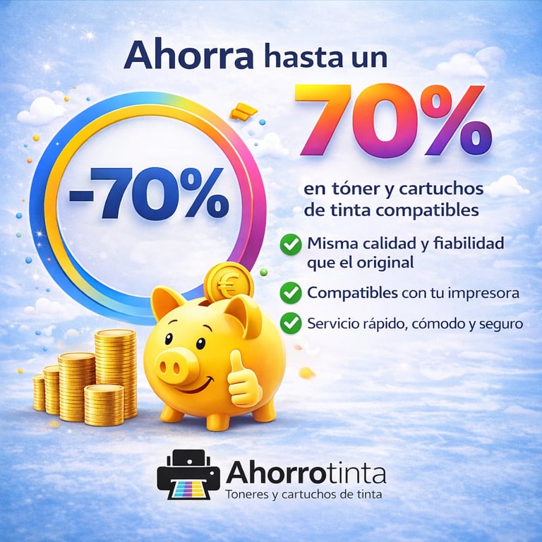 En Ahorrotinta, combinamos tecnología y confianza para ofrecer cartuchos y tóners compatibles que cuidan tu bolsillo sin sacrificar resultados.